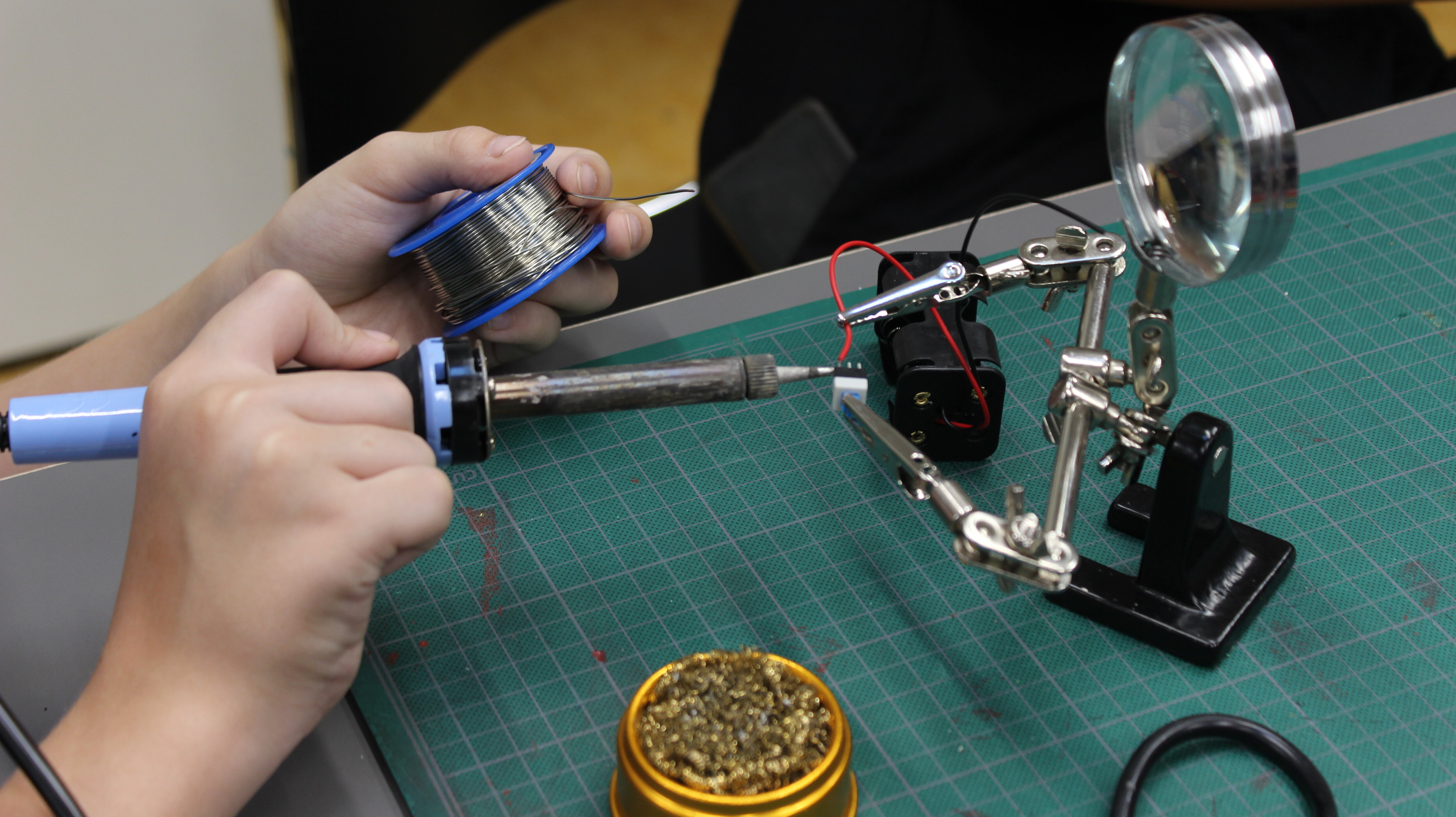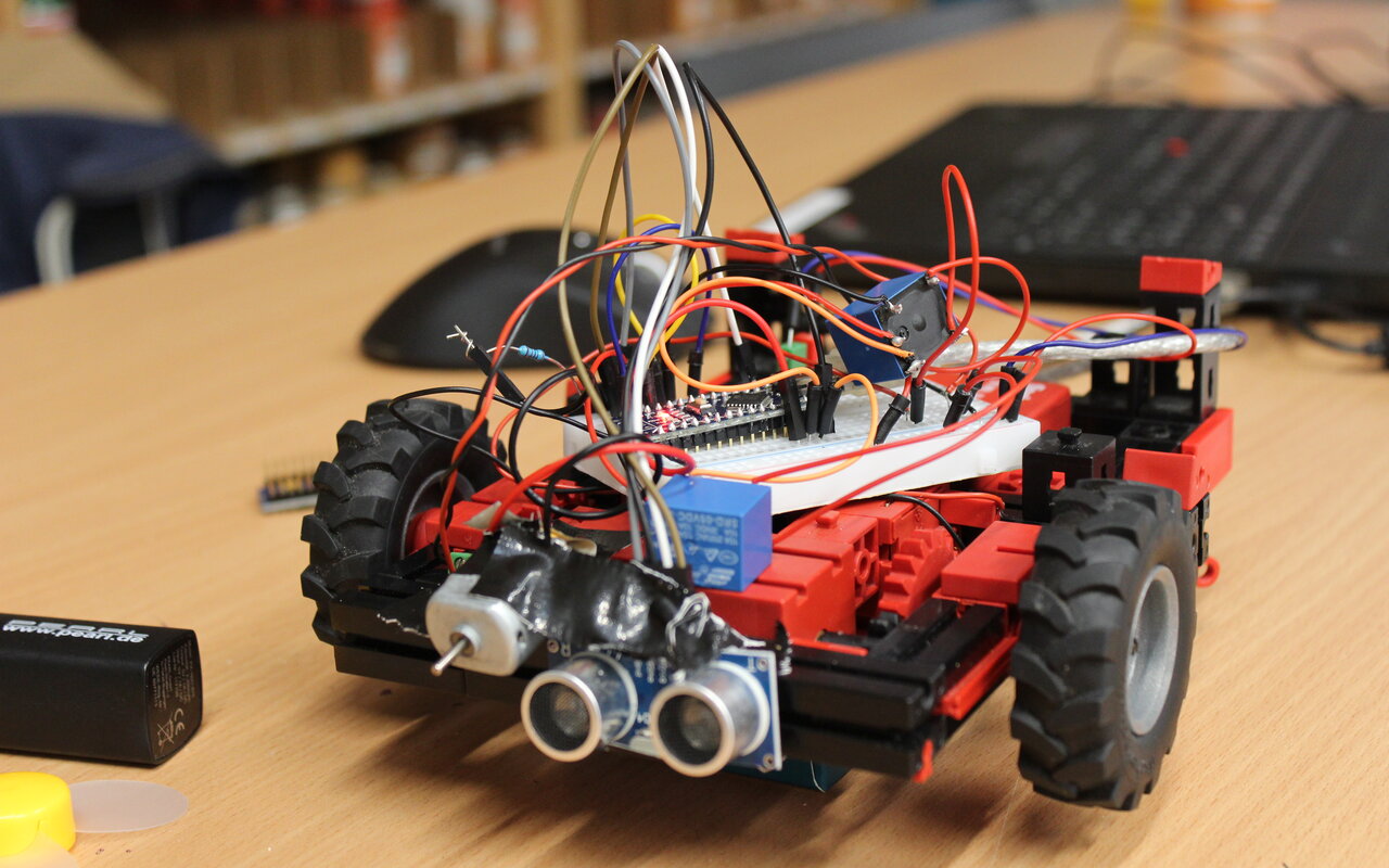 In der Ferienwoche baut ihr eigene Roboter! Als Erstes entwerft ihr euren Roboter. Was soll er können? Danach probiert ihr aus, wie verschiedene Schaltkreise funktionieren, wofür ihr Motoren, Sensoren, etc. braucht. Dabei zeigen wir euch auch, wie Löten funktioniert. Dann gestaltet ihr euren Roboter nach euren Belieben mit den verschiedensten Materialien. Bei der Abschlussveranstaltung könnt ihr eure einzigartigen Roboter präsentieren.
