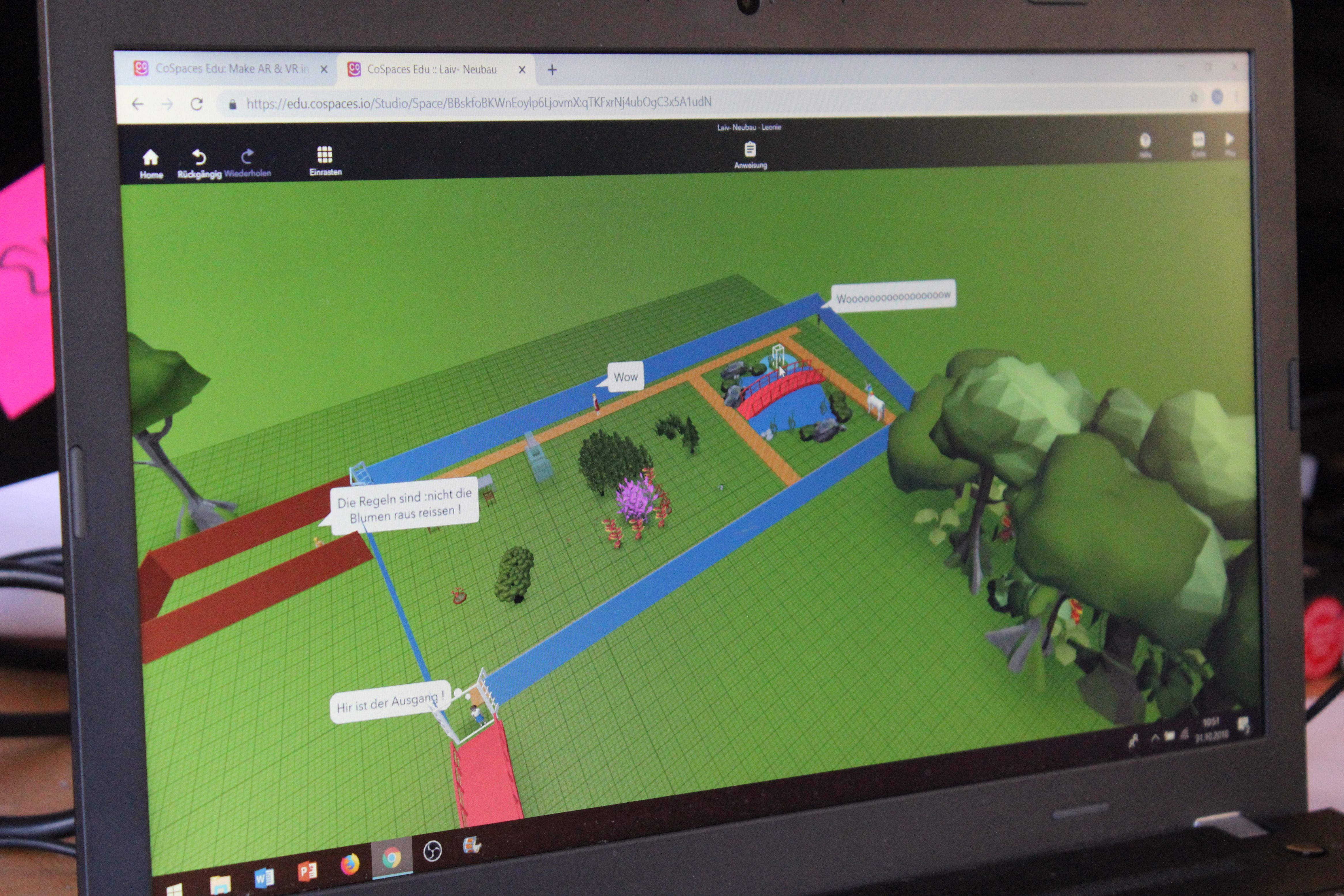 Die Schüler:innen lernen eine einfache Software zum Erstellen einer virtuellen Umgebung und ihre Grundfunktionen kennen. Sie erstellen eine eigene Welt und programmieren einige Elemente nach ihren Wünschen. Zum Abschluss entdecken sie die erbauten Welten mit dem Smartphone und der VR-Brille.