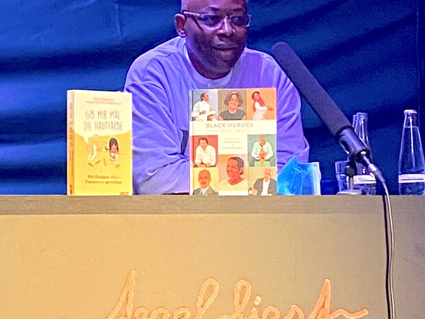 Auch die erstmalige Teilnahme der Black Dads Germany mit ihren Kids, haben die Lesung zu einem Fest werden lassen. Sie haben die Bücher: Gib mir mal die Hautfarbe und Black Heros vorgestellt.
