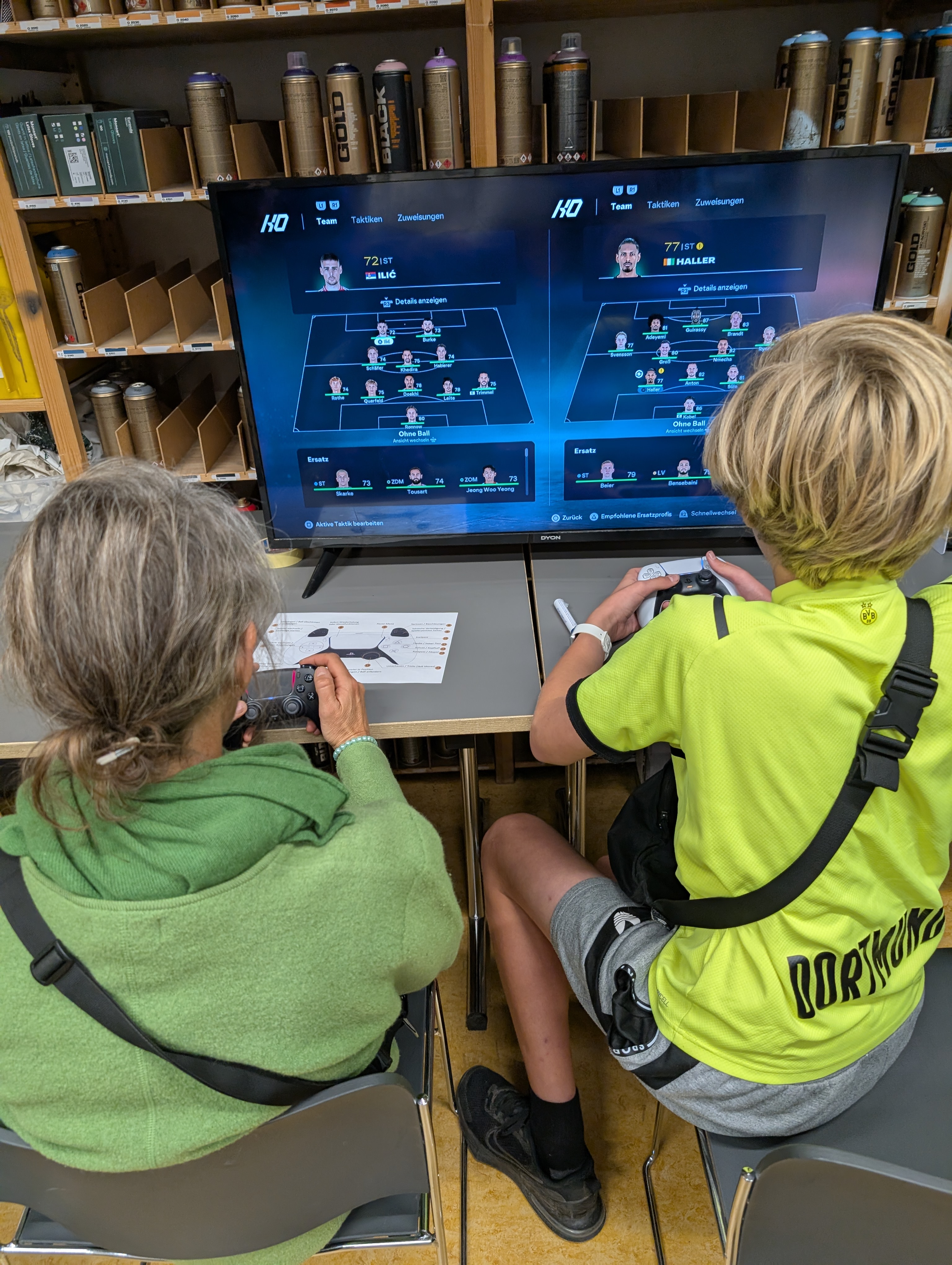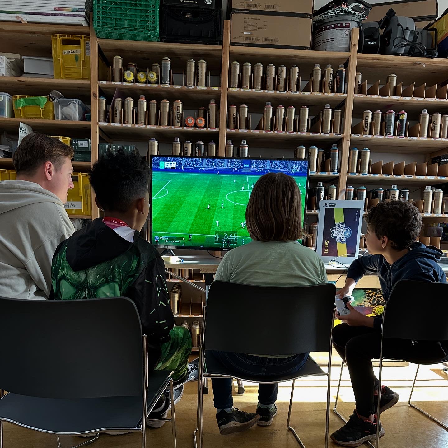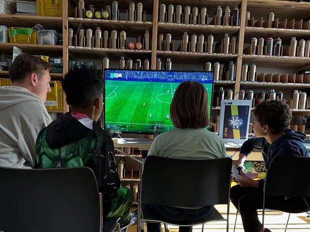Zwischendurch ging es immer wieder in den Garten, wo Bewegungs- und Reaktionsspiele für körperlichen Ausgleich sorgten – denn E-Sport bedeutet längst nicht, den ganzen Tag nur zu sitzen.Dann wurde es ernst: Die Gruppen entwarfen ihre eigenen Turnierformate. Ob Solo oder Team, ob kurze oder lange Runden – alles wurde selbst bestimmt. Anschließend begann die Trainingsphase, in der fleißig Taktiken ausprobiert, Strategien besprochen und Fähigkeiten verbessert wurden.